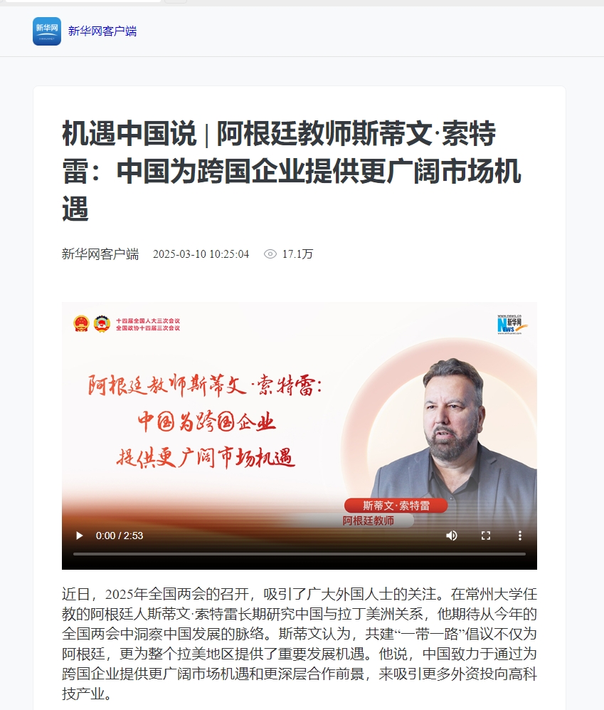 新華網(wǎng):機(jī)遇中國說 | 阿根廷教師斯蒂文·索特雷:中國為跨國企業(yè)提供更廣闊市場(chǎng)機(jī)遇